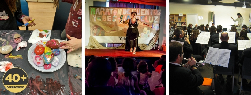 Desde el Gobierno municipal, esta agrupación vecinal ha logrado que estas manifestaciones artísticas sean hoy por hoy una “herramienta fundamental” en el crecimiento y desarrollo personal de multitud de niñas y niños de Yebes y Valdeluz. “No es casualidad que en estos momentos más de la mitad de la población tenga el carnet de usuario de la Red de Bibliotecas Municipales, que en 2016 fue la primera de Castilla-La Mancha en obtener el premio a la biblioteca del año”, recuerdan desde ‘40 Compromisos’. Eventos que también han contribuido a crear “señas de identidad” con las que se identifican cientos de vecinos como el Maratón Viajero de los Cuentos, el Parque de Atracciones Literarias, el Cine de Verano, los Clubes de Lectura, el Festival de Primavera, el Bicicuento, los Encuentros con autor, la bibliopiscina o la Liga de los Libros. Una apuesta por el saber que se ha visto refrendada con servicios formativos como el Taller de Dibujo y Pintura, la Escuela Municipal de Danza, el Aula de Teatro o la Escuela Municipal de Música, en los que cerca de 120 personas cultivas y se forman en estas disciplinas.